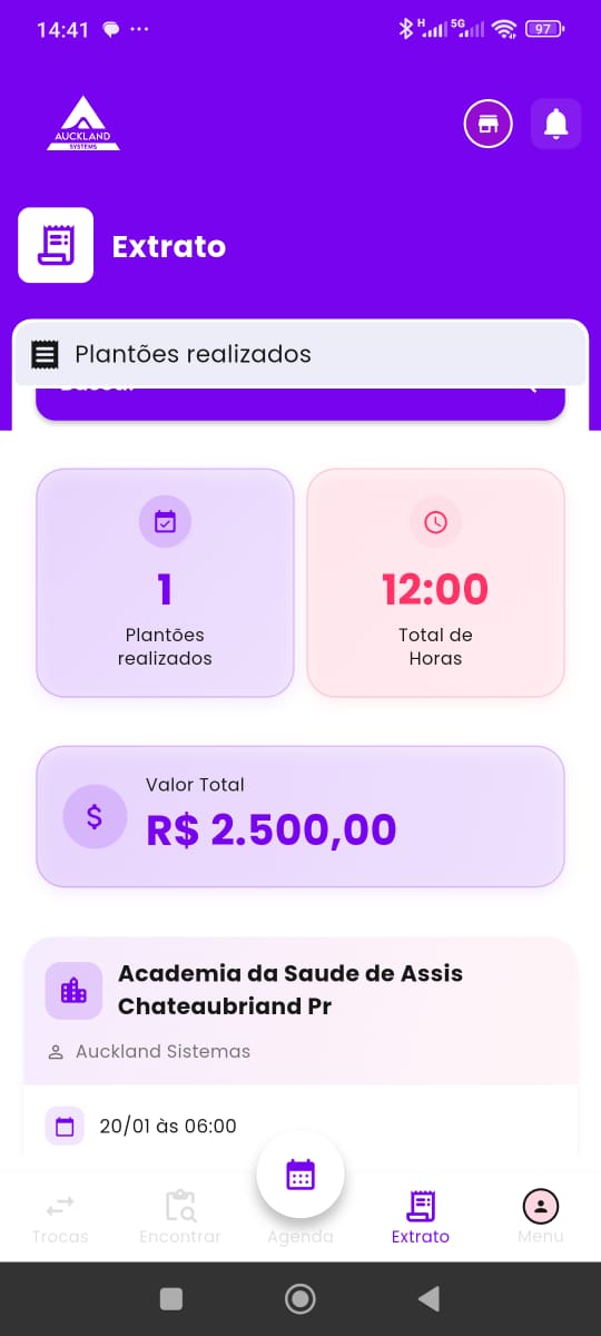 Sistema totalmente on-line, assinaturas digitais, e integração ao módulo financeiro para antecipação assim que o plantão é finalizado